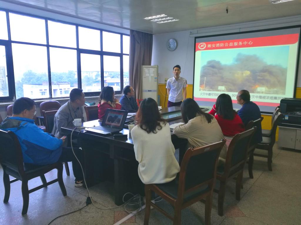 活动中,湖南省湘安消防公益服务中心教官谢剑波普及了消防安全基本常识及实际技能,重点讲解了火灾预防、处置初期火情及逃生自救办法,说明了消防器材的正确配置、使用方法、维护保养等知识,并现场进行使用示范。随后,谢剑波解答了与会人员的消防安全问题。