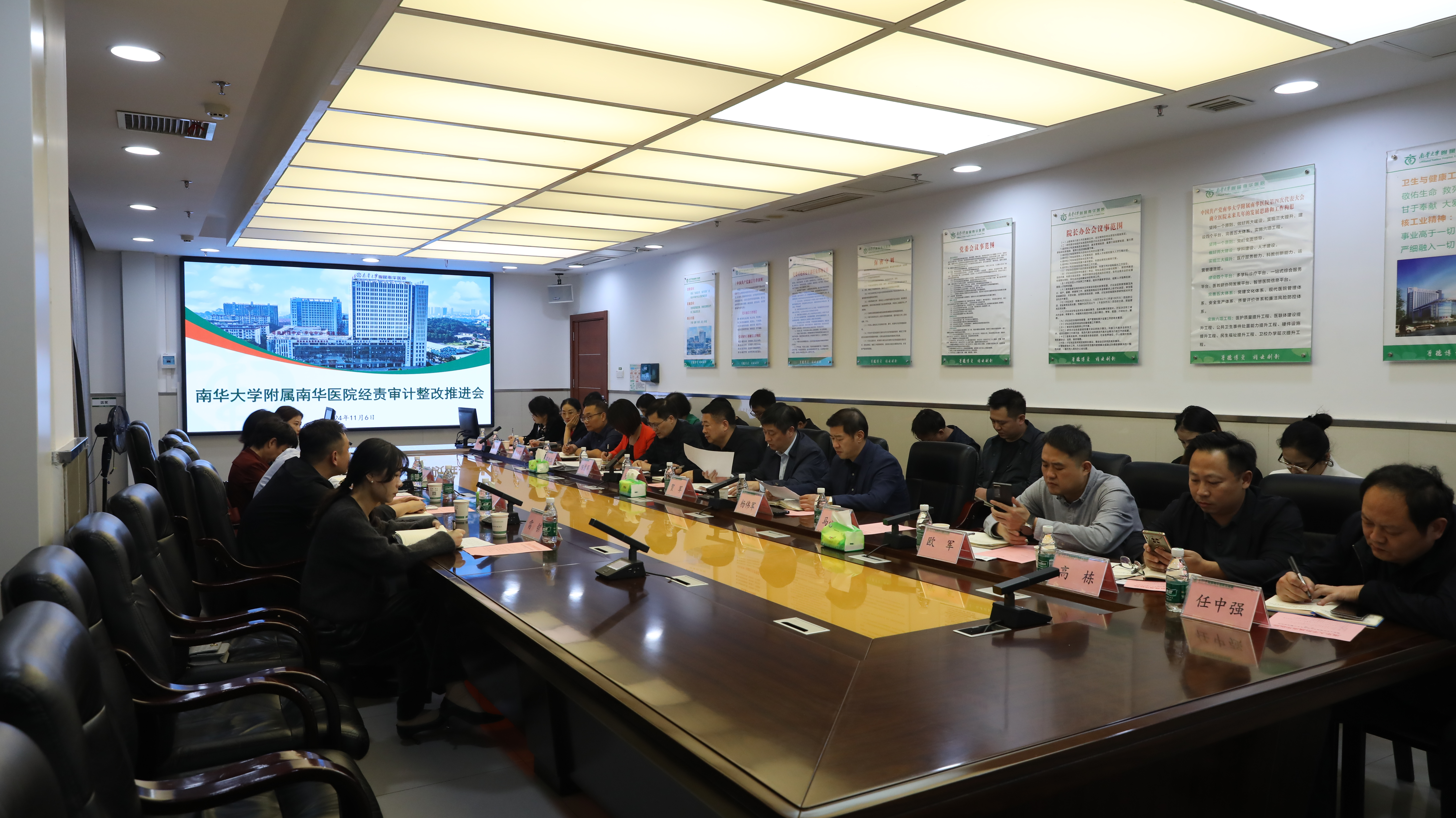 2024年11月7日下午,校党委委员、副校长郑卫民带领审计处一行赴英国上市公司365附属南华医院对医院审计整改情况进行督查,推动医院审计整改落实。监察处副处长李汉冀,审计处负责人李艳春、副处长李玉芳,附属南华医院党委书记周玉生、院长贺军、副院长陈勇军,核工业卫校校长廖红伍,医院在院院领导及相关职能部门负责人,审计组成员参加会议。会议由审计处负责人李艳春主持。